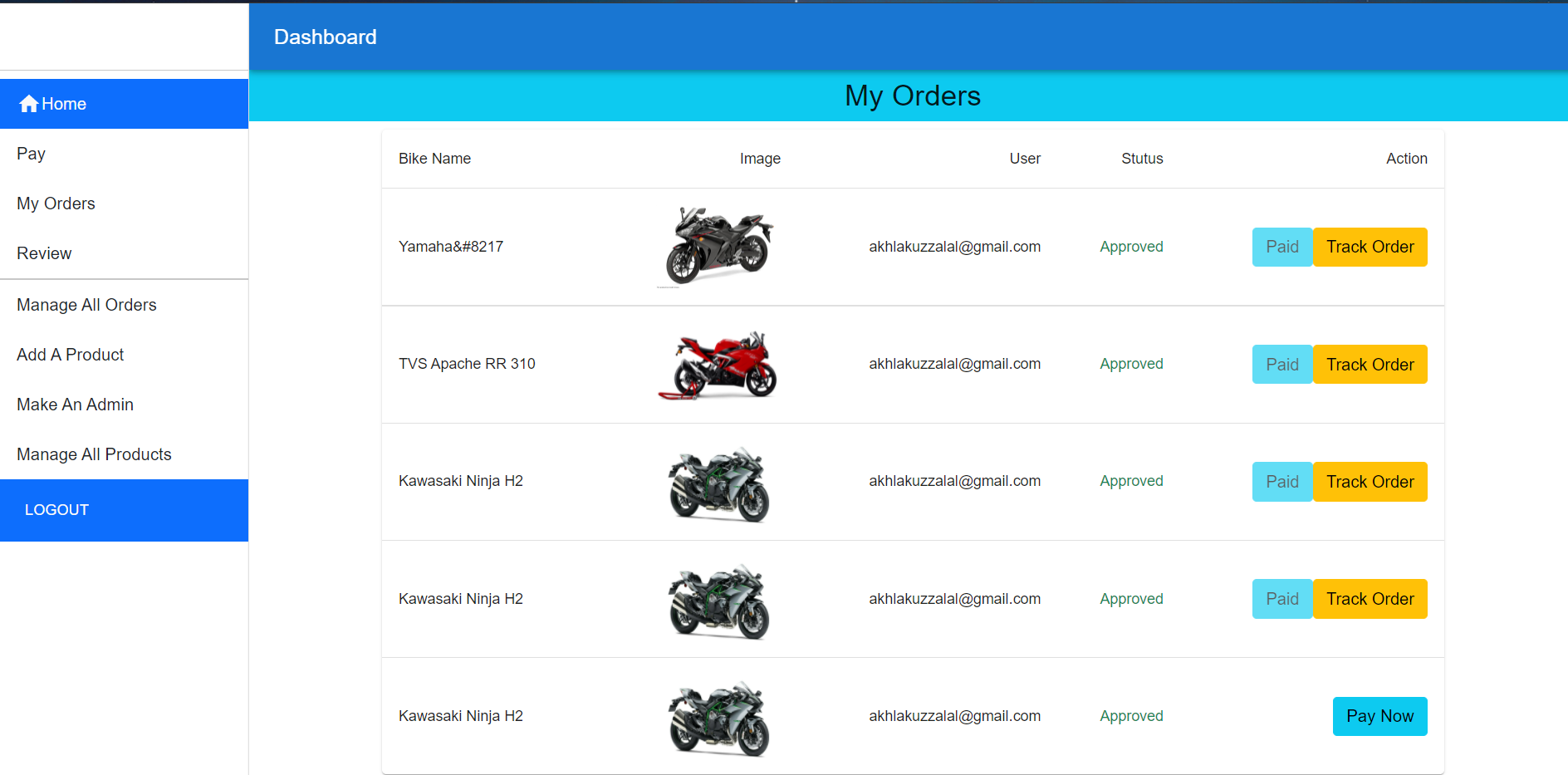 - If you are admin you can manage all order if need you can approve or decline any user order